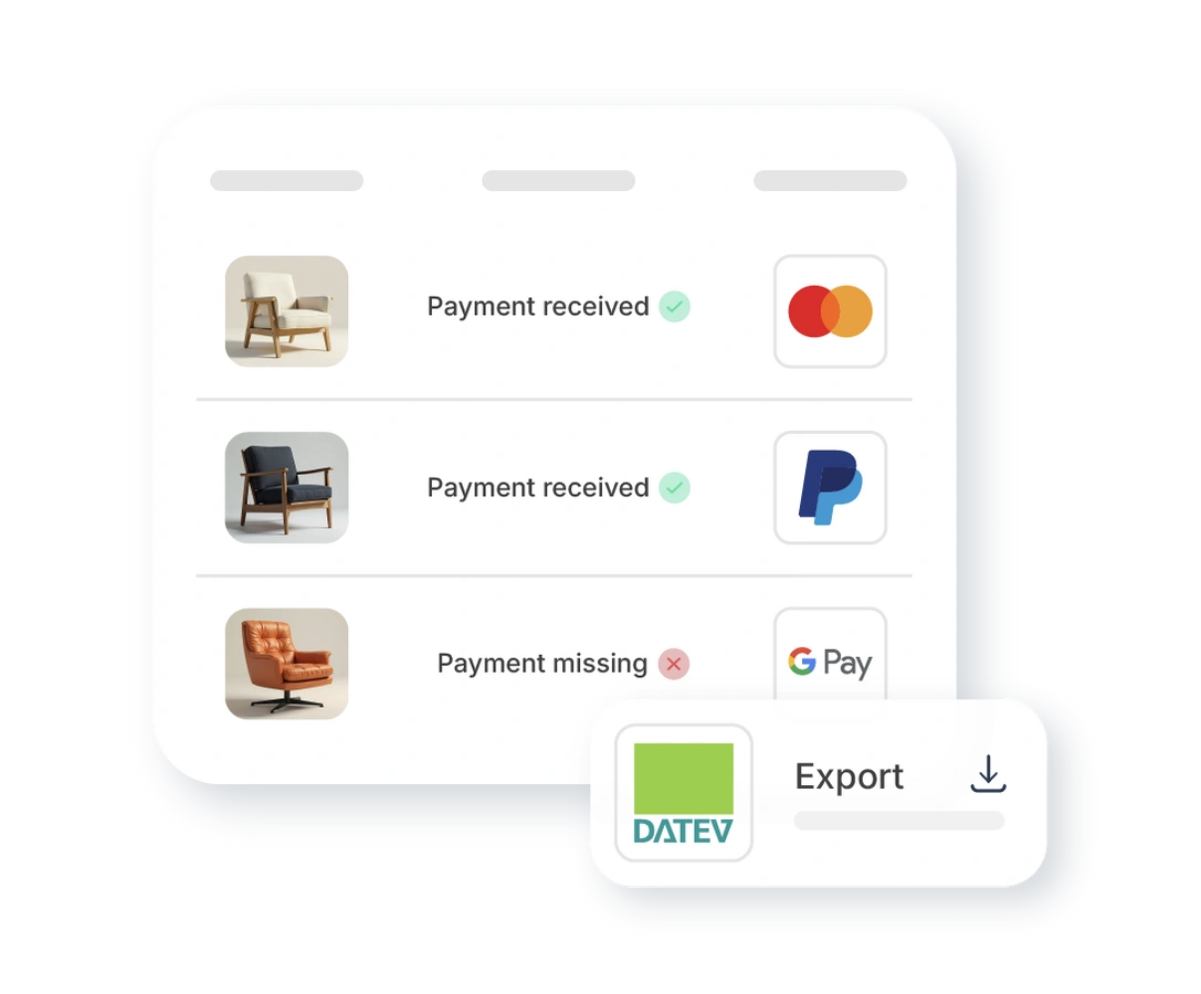 Export your complete transaction history automatically through DATEV - or (soon) any other accounting software you prefer.