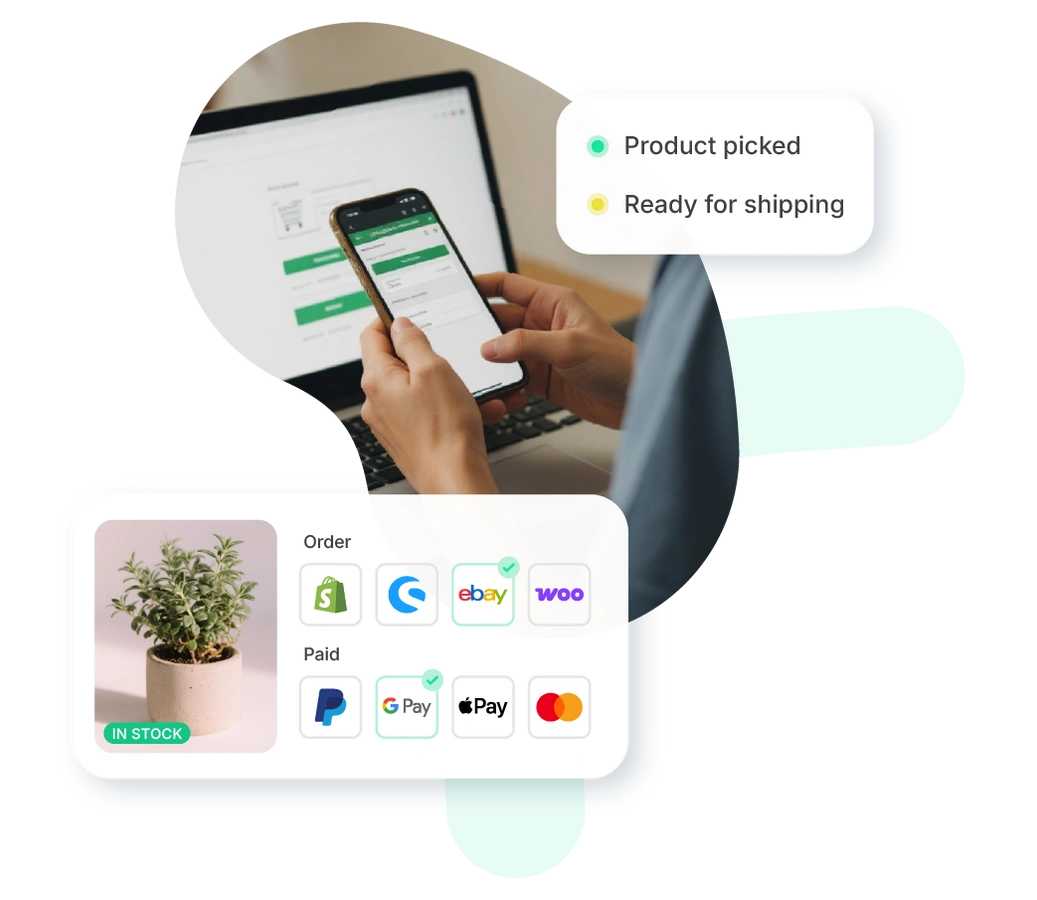 Xentral handles everything for you: it imports orders, syncs with the warehouse, and creates delivery notes and invoices automatically.